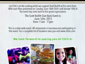Chili’s restaurants across Louisiana will be hosting a fundraiser tomorrow, June 16, for the game warden shot in the back last month during a traffic stop on Russell Sage WMA.