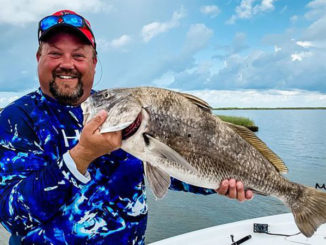 Matt Dreiling caught this nice black drum with a live shrimp under a Four Horseman Cork while fishing in Lake Robin on Aug. 10, 2020.