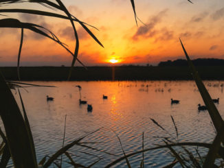 Preston Salassi captured this sunrise over Pine Island while hunting with his friend Daniel Mesen, his son Kale, and their Boykin Spaniel, Sue. They scratched a two-man limit that day along with a pair of