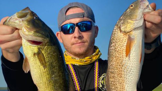After launching out of Campo’s Marina in Shell Beach, Jordan Nami headed for the Biloxi marsh where he found clean moving water and caught a ton of bass plus his limit of redfish on a