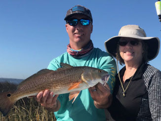 Justin Governale and his mom Cheryl with a nice redfish they caught in Calcasieu Lake on Nov. 7, 2020.
