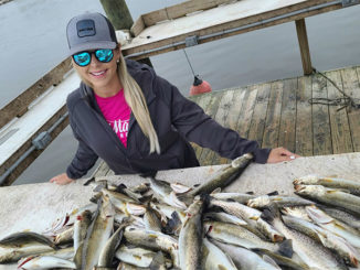 Louisiana sportswoman Stephanie Bonner with a limit of speckled trout she caught out of Delacroix on Nov. 11, 2020.
