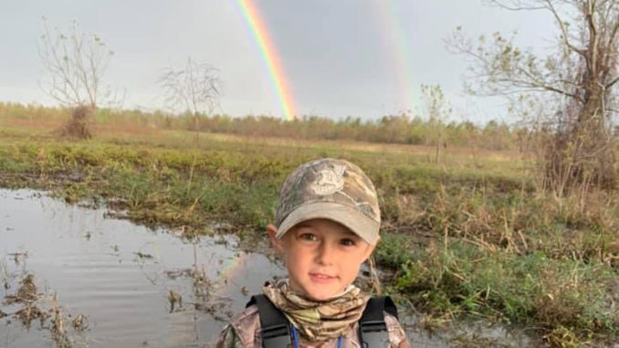 Rohen Biehl, 6, son of Jeremiah Biehl, was pictured under this double rainbow during a duck hunt on Nov. 14 in Chopin, La.