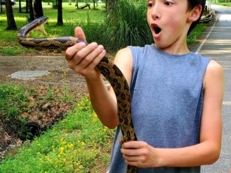 Luke Michel found this “friendly” Rat snake on a walk around his home in Prairieville, LA earlier this year. You can see by the way they both have their mouth open they were both surprised.