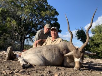 John L. Magee from Bogalusa, Louisiana recently visited Texas Hunt Lodge in Ingram, Texas and collected this Giant Addax antelope. He was guided by Justin Taylor and cameraman Jim Rinker. After several hours of hunting