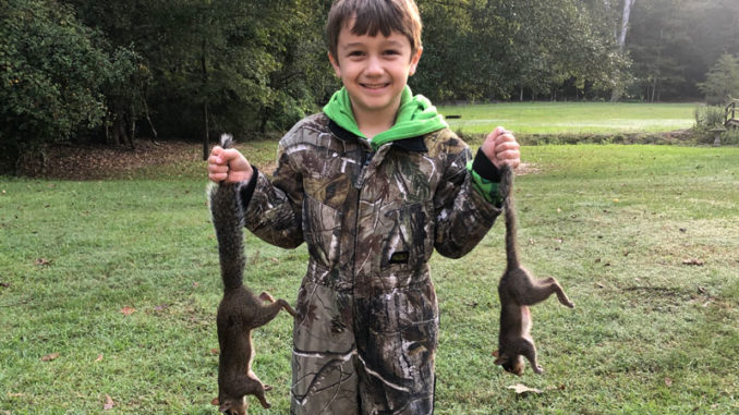 On his first squirrel hunt ever, Lane Maxwell killed these two squirrels with a .22 rifle while hunting in Morehouse Parish.