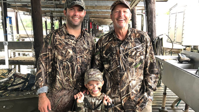 Jude Devillier, 6, along with his dad Brandon and his pops are keeping the outdoor tradition alive with their teal hunts out in the marsh near Pointe a la Hache.