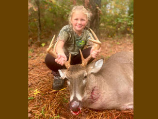 Mia Rhodes with her Natchitoches Parish 8-point. Mia Rhodes, eight years old, has chosen to pass on many young bucks over the last three years, with the hopes of harvesting a “big buck”. While hunting