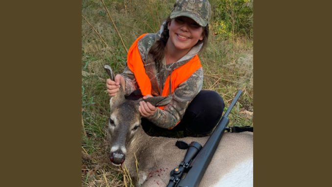 Rachel Henry, 12, took her first deer with her .308 while hunting in Clinton with her dad Keith and brother Reid.