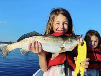 My second oldest daughter, Nora (7), Caught this 20″ trout trolling swimbaits along the Calcasieu Ship Channel in early December.