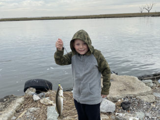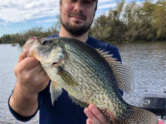 Andrew Cancienne age 9 of Houma with one 6 specs he caught at Point-Aux-Chenes marina.