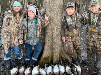 Hadeligh and Jackson Jeansonne, Kollin Guilbeau and Lanny Coco enjoyed a morning duck hunt in Avoyelles Parish.