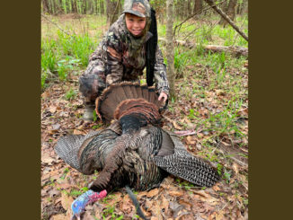 Eleven-year-old Mac Pardue poses with his first turkey taken at the Kisatchie National Forest on opening day of youth season. He used a 20 gauge franchi on the 20-pound gobbler with a 9-inch beard.