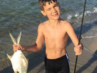 Eight-year-old Liam Perez of St. Bernard caught his first pompano on Perdido Key Beach, Fla. He was on a family vacation with his parents, uncles, aunts, cousins, grandparents and great grandparents in the first week