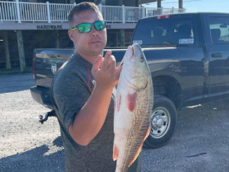 John Polk’s first redfish was recently caught in the Lake Borgne area.