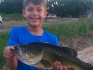 Parker Leleux, 13, hooked this bass while fishing a Texas Style worm in a private pond near Crowley. He released the fish after taking photos.