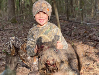 Six-year-old Miguel Guiteria IV got his first hog in St. Helena Parish.