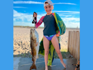 Harper Duhon, 10, caught her first redfish on a camping trip with her family to Holly Beach on Oct. 16, 2021. After a day of crabbing on the Sabine Refuge, Harper decided to go with