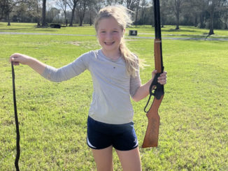 Charleigh Kaliszeski was able to get her first solo kill in her family’s pond. This big water snake was met with a shot to the head from Charleigh’s Red Ryder. Red Ryder packs a punch