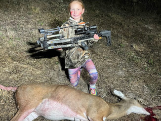 Emery Lyons of Vinton killed her first deer while hunting with her dad on private land in Natchitoches Parish on Oct. 7, 2023. She using her grandfather’s crossbow she dropped the deer at 40 yards.