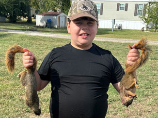 Cain Purpera with squirrels taken on Oct. 7, 2023 in Angola, La.
