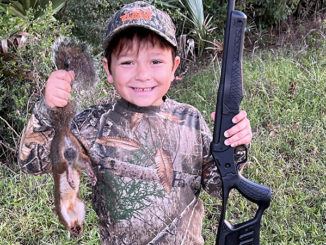 Thomas Thibodeaux, 6, of Lydia with his first squirrel on opening morning of squirrel season 2023.
