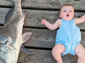 Elliott LeBlanc, 6 months old, laying beside a black drum caught by Alex Lamb off a pier in Lafitte.[…]