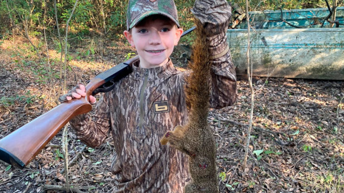 Vincent Mayfield, 10, got his first squirrel on private property outside of Delcambre on Dec. 27.