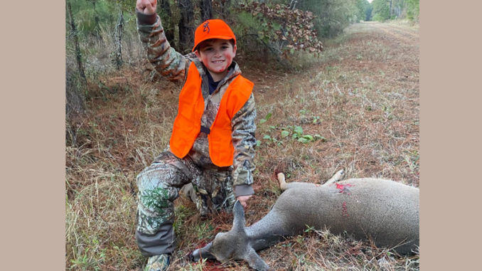 Braxton Fortie of Maringouin, 7, killed his first deer while hunting with his dad on Nov. 19.