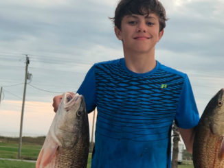 Isaac Landry with a pair of redfish from Big Lake.