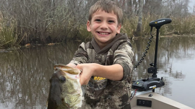 Jase LeBlanc with his first bass caught in 2023 while spending time at his family’s camp on the Tangipahoa River during Christmas break.