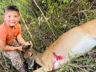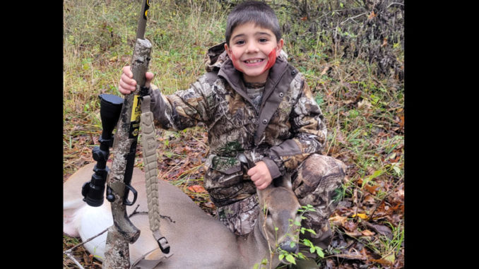 Six-year-old Mason Chatelain killed his first deer ever with a crossbow. He was hunting with his daddy, Jarred Chatelain, at Grand Lake Rod and Gun Club.