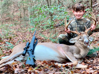 Thirteen-year-old Colton Jellum downed this 8-point and a doe while hunting with his grandfather’s Winchester model 94 30-30 open sites. He dropped the doe at 35 yards and the buck at 20. His first deer