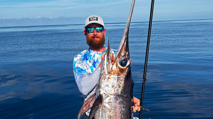 Capt. Alex Sevin with a 120-pound swordfish caught on a trip with Coco Charters.