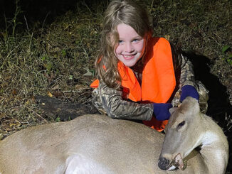 Ten-year-old Gracie Caldarera of Ragley with her first deer. She shot this big, old doe in Ragley with a .243 rifle on Dec. 10, 2023 while hunting with her father, Charlie Caldarera. She put her