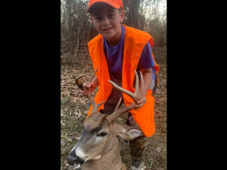 Eleven-year-old Nick Rodrigue shot this buck while hunting with his dad on Nov. 25, 2023 on private land in Tensas Parish.