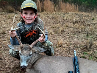 Graham Boquet, 7, of Thibodaux, got his first deer with a 6.5 Grendel AR platform hunting with his dad in Porterville, Miss. The 6-point had a broken tine.