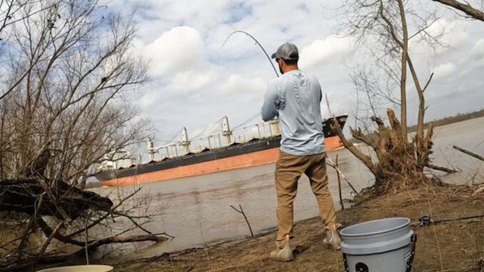 Bank fishing for catfish on the Mississippi River