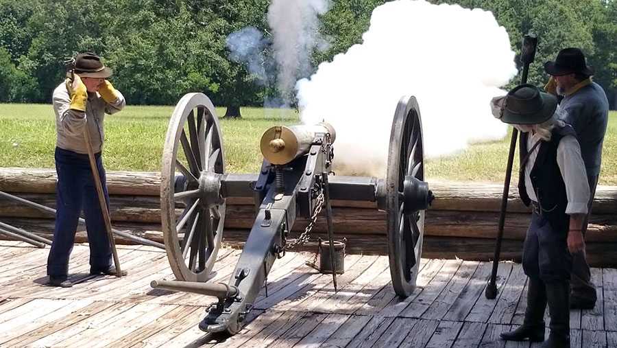 “The museum has great exhibits and displays of original artifacts,” said Daniel Goyer, manager of the site as well as the Centenary State Historic Site in Jackson, La. “We also have a theater that shows viewings of a site introductory history video. Outside the museum are several interpretive displays pertaining to Civil War artillery. The main feature of the site is six miles of walking trails that lead to many original battlefield features such as rifle pits, trenches, artillery positions and large defensive earthworks.”