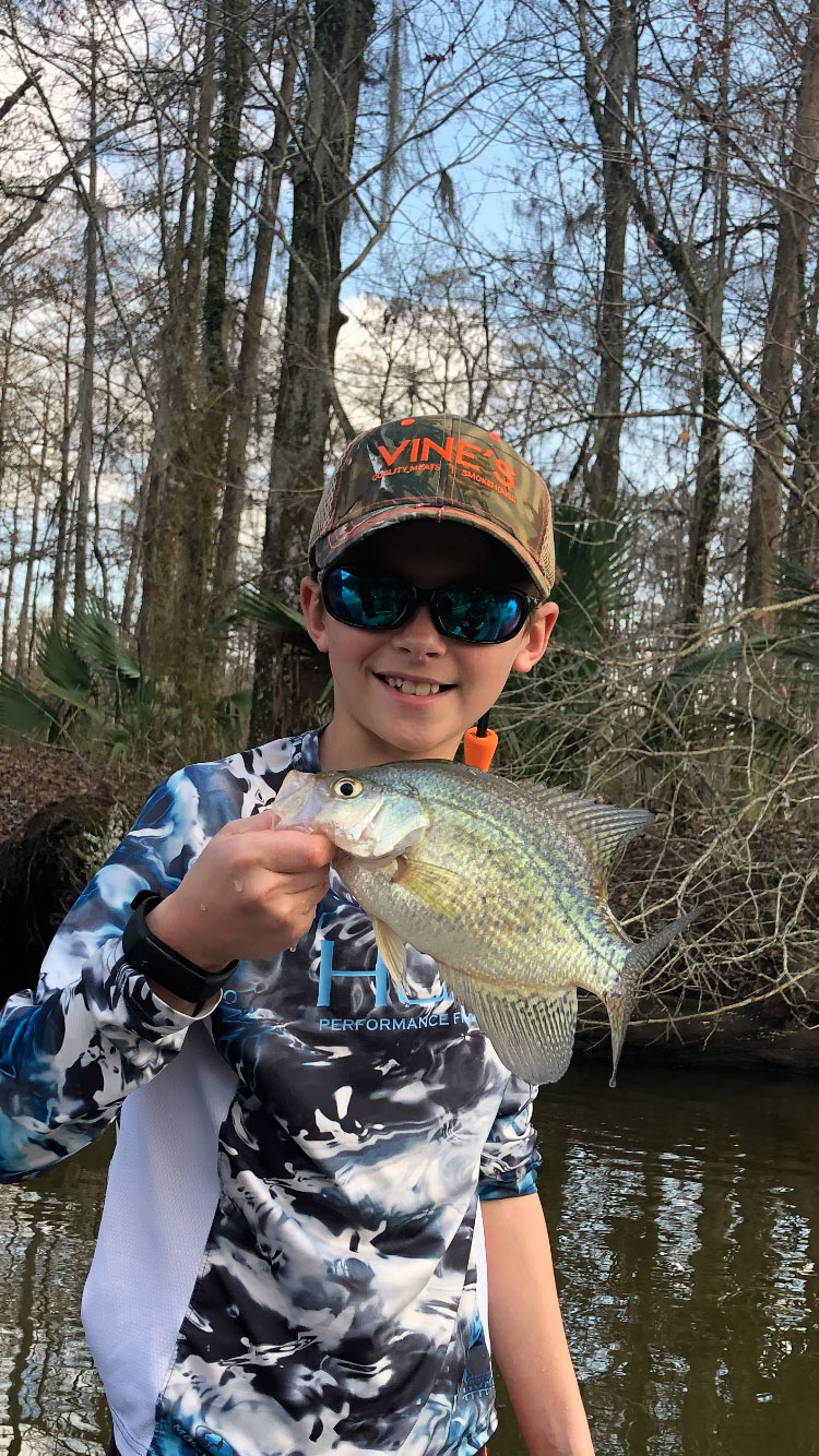 When Douglas Borne Jr. asked Ross if he wanted to go hunting to try to fill his last doe tag on his 11th birthday, he said “I already killed one deer this year so that is enough. Let’s go fishing!” So the pair did, and pictured is Ross with their only sac-a-lait of the day. It was a nice Sunday on Lake Verret and a happy birthday boy!