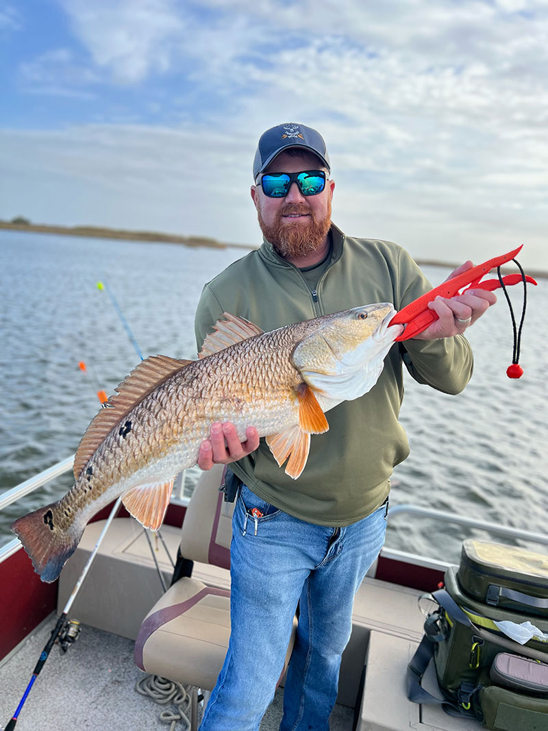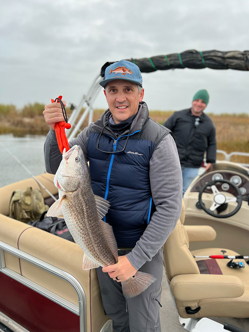 “My friends and I fished Hopedale on Friday and Saturday in some pretty rough weather conditions, with wind gusts upwards of 30 miles an hour in a pontoon boat. We stuck it out and managed to catch some very nice reds along with some specks, sheepshead and blue cats. We brought along my friend’s brother from Denver, who had never fished before, and were able to get him his first redfish. Conditions aside it ended up being a great trip.”