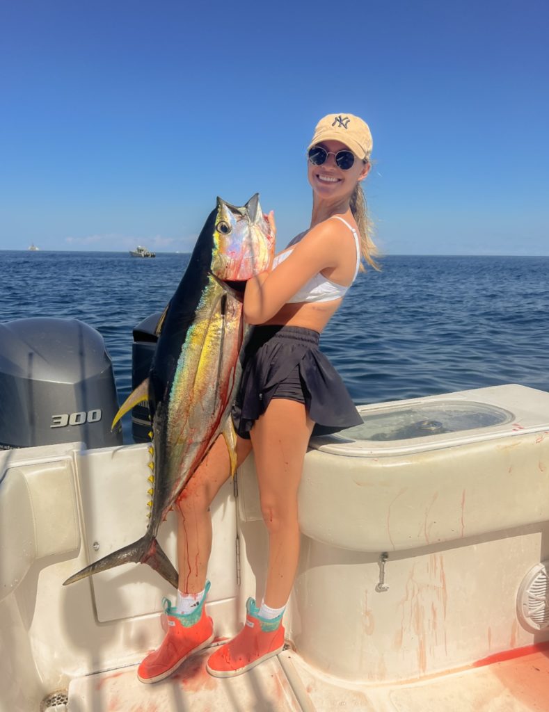 Bailey Trosclair with a yellowfin tuna caught off the coast of Venice on Sept. 10, 2022. She said she’s extremely grateful for growing up in such close proximity to some of the best fishing in the world.