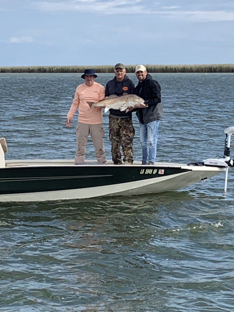 We were fishing down river in Venice when I hooked what I originally thought was a nice trout but quickly realized I had hooked into a large red. Thirty minutes later we landed the largest redfish I had ever caught, then quickly took a few pics and released it to fight again. After that we finished out our limit of trout and headed back to the camp. Great time fishing with friends and family.