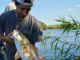 (Left to right) Luke Moore, Caleb Rumfola, and George Giles give the thumbs up of approval after a successful crab harvest in Delacroix.