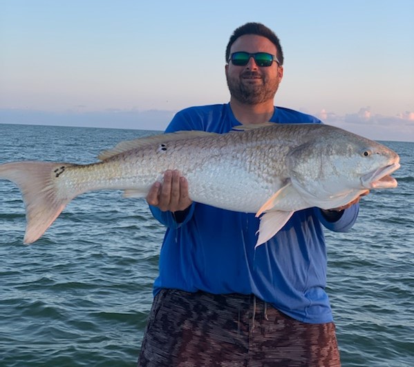 Dooley caught this huge redfish while schooling at the Cameron jetties on Aug. 16, 2022.