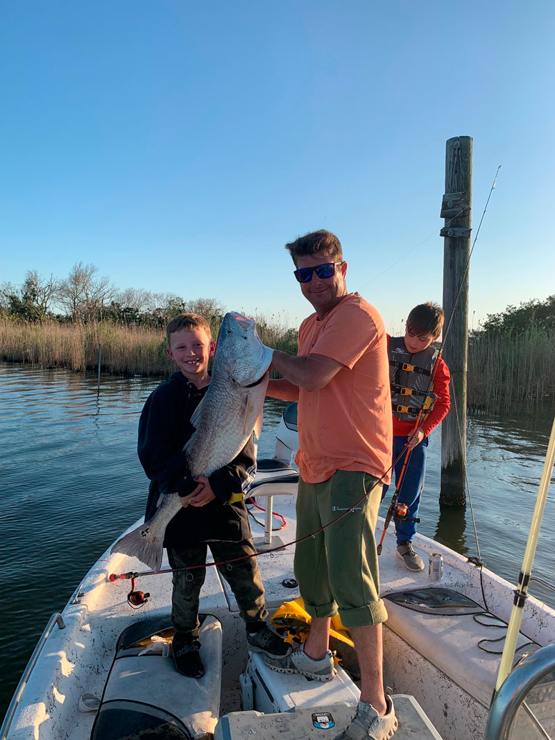 Calvin Bordelon, 8, reeled in this huge bull red in Cocodrie with the help of his T-Nonc, Travis Gremillion.