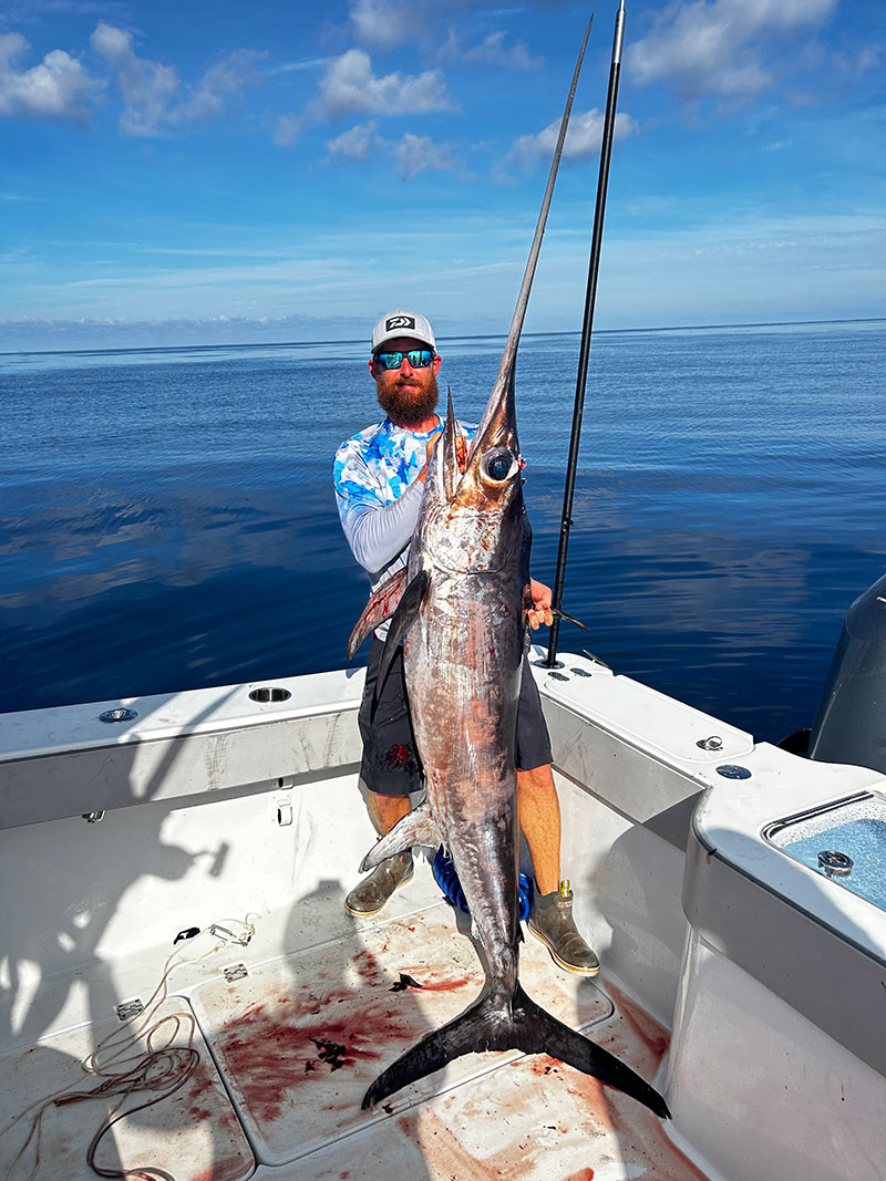 Capt. Alex Sevin with 120-pound swordfish May 1, 2024 Field Reporter Fishing Reports Capt. Alex Sevin with a 120-pound swordfish caught on a trip with Coco Charters. This page is available to subscribers. Click here to sign in or get access.