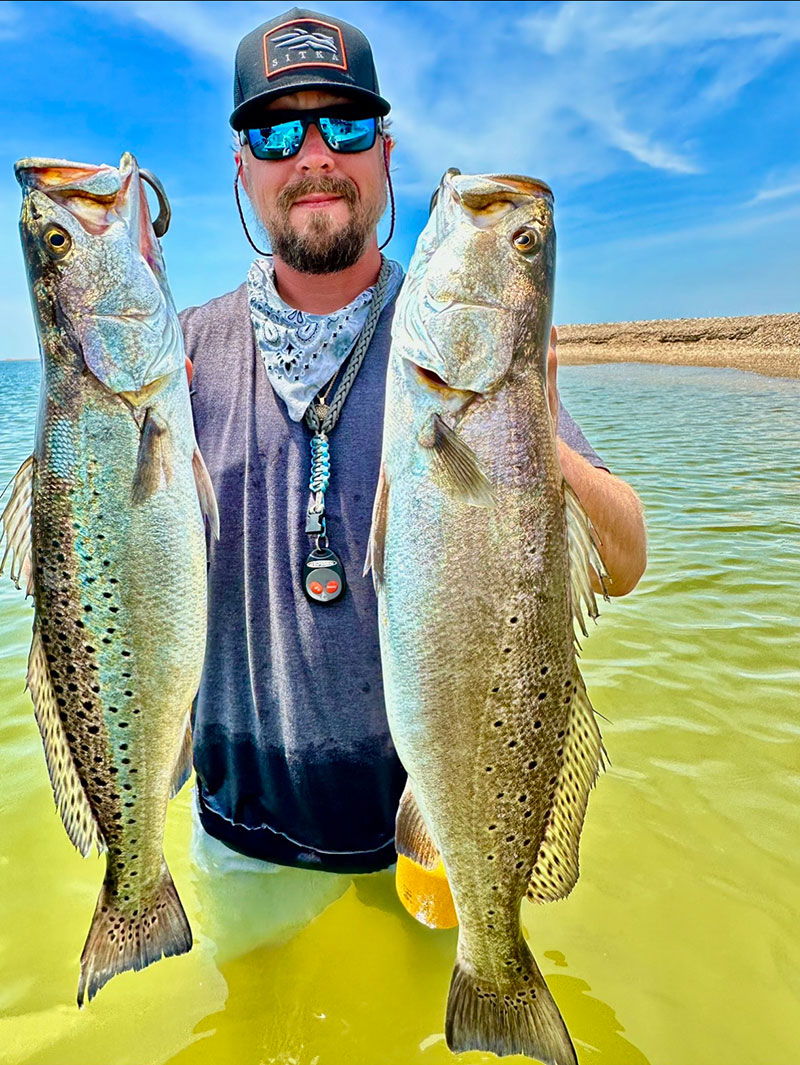 Cayce Causey caught these gator trout old school with a gold spoon at Freemason Island on May 4. One was 29 inches and the other was 27 inches. The trout were released afterwards.