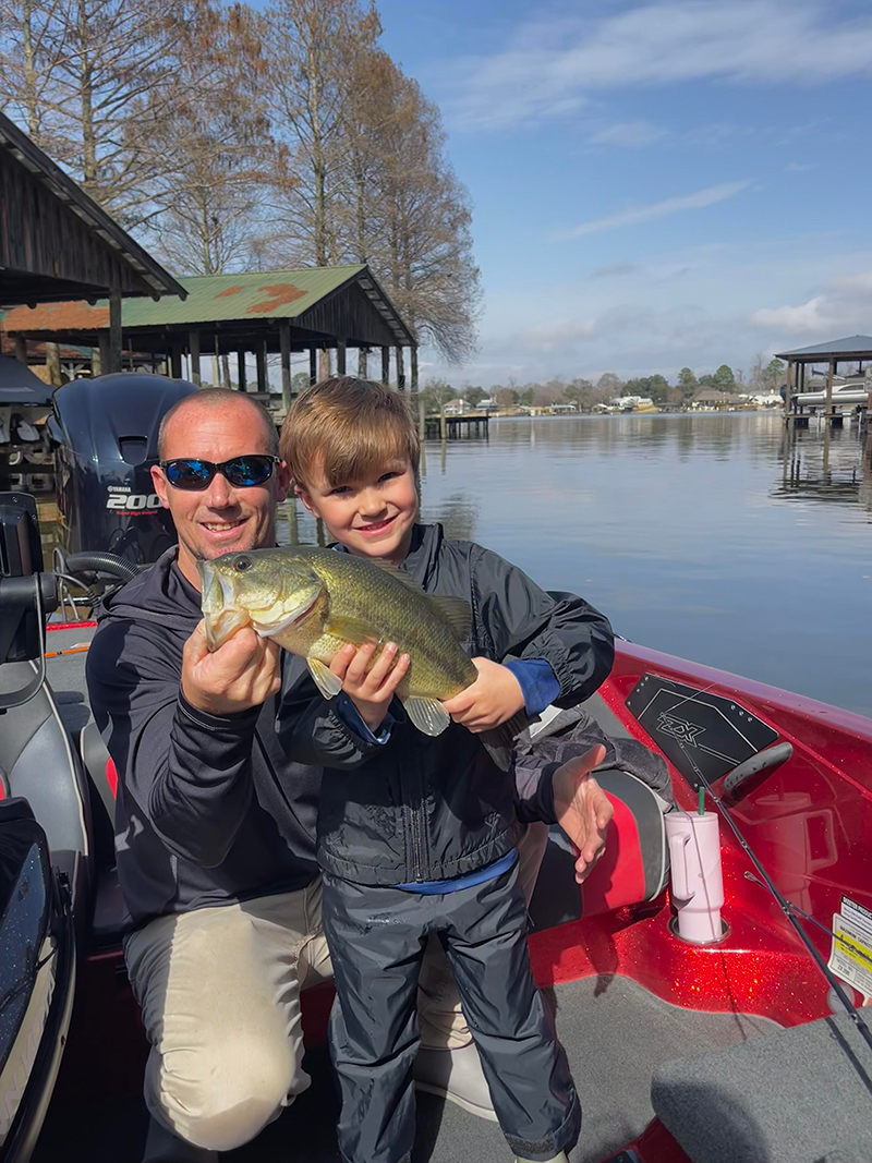 Charles Leonard, 5, of Lakeland caught his first bass in False River on Feb. 4 while fishing with his mom, Cassie Leonard, and stepfather, Cody Morgan.