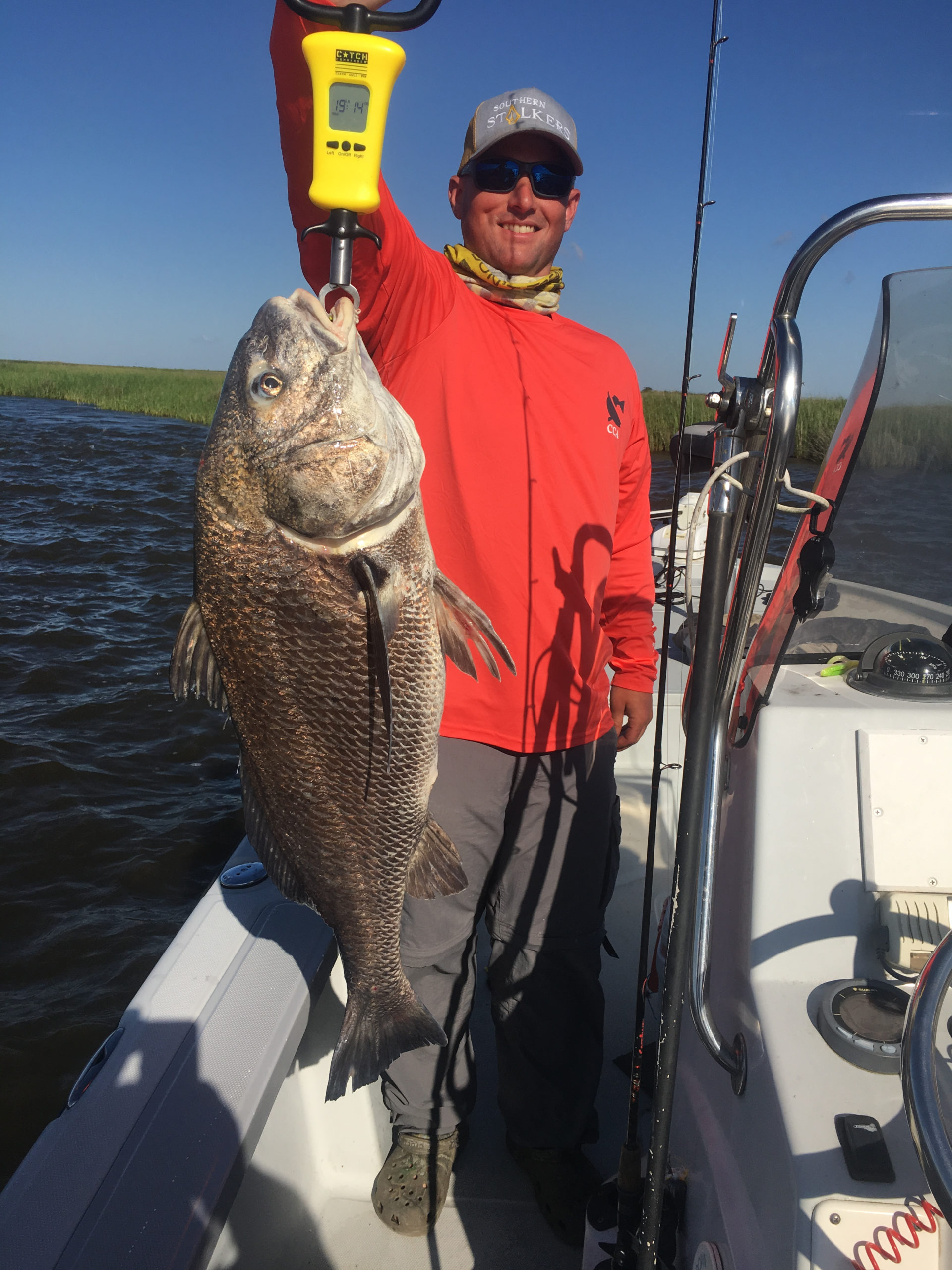Brian caught and released this big black drum while fishing in Delacroix for speckled trout.